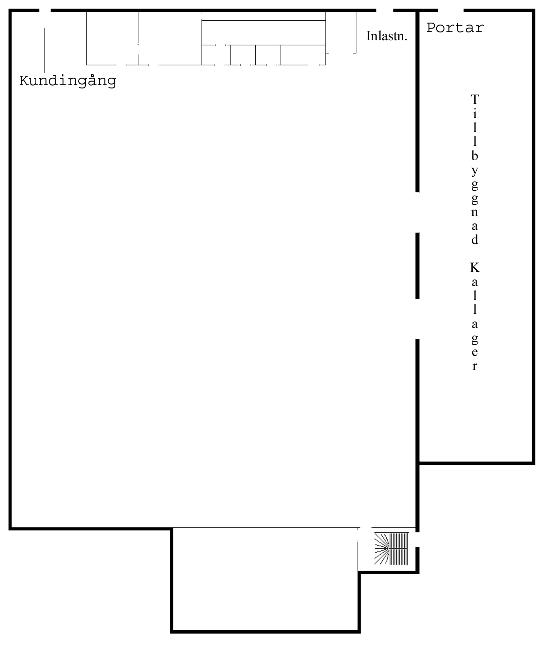 På bottenplan i Kampen finns två butiks / lager lokaler med tillhörande kontor.